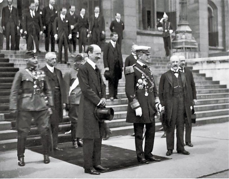 Rok 1921. István Bethlen i Miklós Horthy na schodach parlamentu węgierskiego. Źródło: Fortepan / László Rosta.