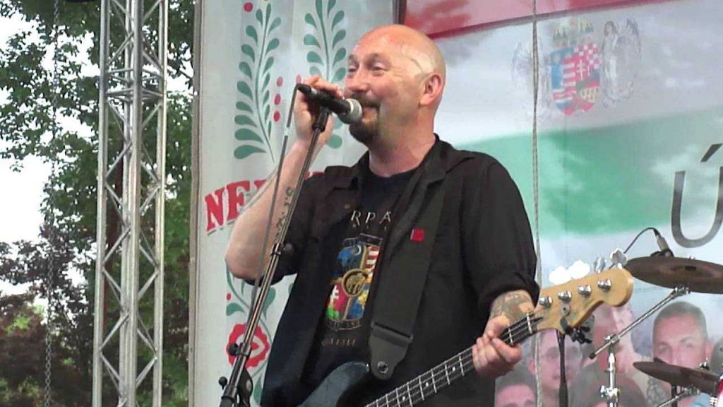 2002 rok. Węgierski Front Narodowy podczas wiecu. Źródło: Wikimedia.
