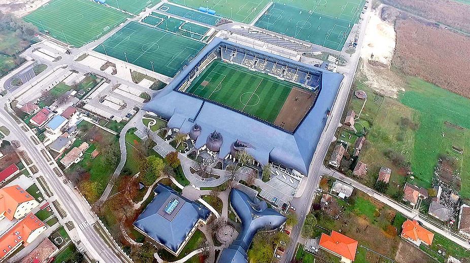 Na Stadionie Pancho Arena gra klub Akademia Puskasa. Orbán na futbol wydał już ponad sto milionów euro. Połowę tej kwoty na kluby Węgrów w Rumunii, Serbii czy na Słowacji. – Sport jest doskonałą odpowiedzią na zagrożenia współczesnego społeczeństwa – mówi premier. Źródło: valvolgyikisvasut.hu.